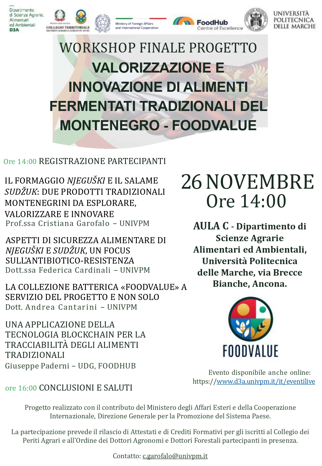 Partecipa al Workshop Finale del progetto FOODVALUE, dedicato alla valorizzazione e innovazione degli alimenti fermentati tradizionali del Montenegro. Un’occasione unica per scoprire come ricerca, sicurezza alimentare e tecnologia si uniscono per dare nuova vita a prodotti tipici come il formaggio Njeguški e il salame Sudžuk.